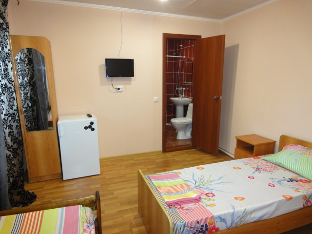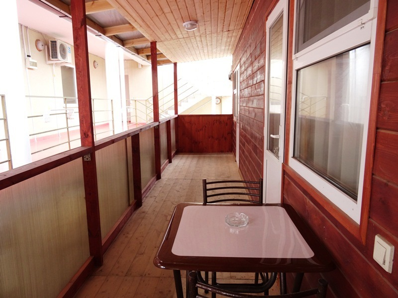 Все номера "Стандарт" оснащены: одно-, полутора- или двухспальные кровати, прикроватные тумбочки, шкаф, туалетный столик+зеркало, телевизор, холодильник, кондиционер, сан. узел в каждом номере (горячая и холодная вода постоянно!!!). Возле каждого номере, на общем балконе индивидуальный стол и стулья.