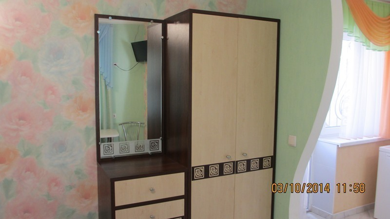 | Мебель: | односпальные и двуспальная кровати, стулья, шкаф, прикроватные тумбочки, стол, вешалка, зеркало, кухонный гарнитур, обеденная зона, стиральная машина |