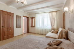 | Мебель: | двуспальная кровать, диван-кровать, шкаф, зеркало, пуфики |