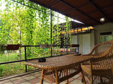 | К Вашим услугам (дополнительно) | - трансфер (платно) - стиральная машина (платно) - WI-FI интернет - экскурсии (платно) - мангал - детская площадка - зеленый двор - беседка - гладильная + утюг - ТВ - СВЧ |