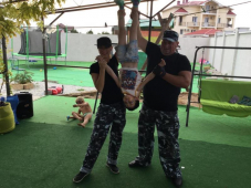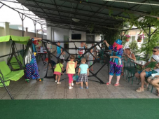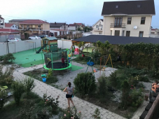 | К Вашим услугам (дополнительно) | - трансфер (платно) - стиральная машина - Wi-Fi интернет - бассейн - мангал - детская площадка - детская анимация (1 раз в неделю) - зеленый двор - беседка - гладильная + утюг - СВЧ - спутниковое ТВ (канал "Disney") - батут - детская горка - бильярд - настольный теннис - футбольное поле - баскетбольное кольцо |