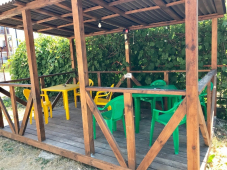 | К Вашим услугам (дополнительно) | - трансфер (платно) - беседка - бассейн - детская площадка - двор - стиральная машинка (платно) - гладильная + утюг - мангал - СВЧ и чайник - кальян (платно) |