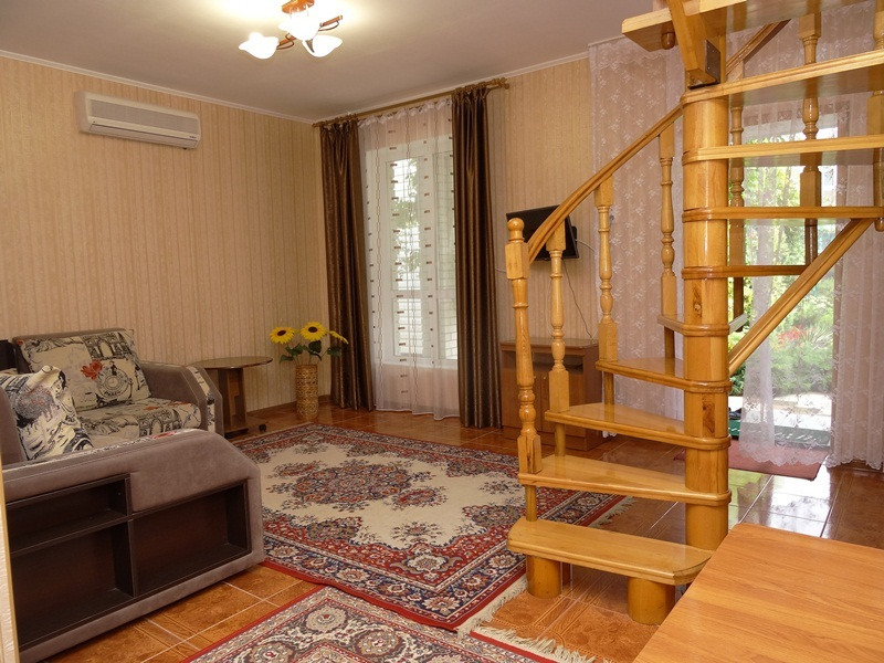 | Мебель: | односпальные или двуспальная кровати (ортопедические матрасы, белое сатиновое белье), диван-кровать, шкаф, стулья, прикроватные тумбочки, журнальный столик, стол, вешалка, зеркало, кухонный гарнитур, обеденная зона |
