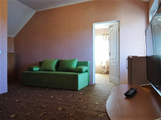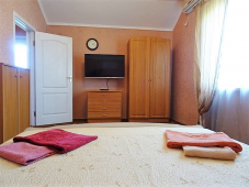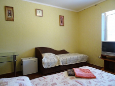 | Мебель: | 2 односпальные и двуспальная кровати, шкаф, прикроватные тумбочки, журнальный столик, вешалка, зеркало |