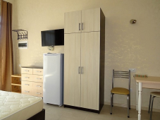 | Мебель: | двуспальная кровать, диван-кровать, кресло-кровать, стулья, шкаф, прикроватные тумбочки, стол, комод, вешалка, зеркало, кухонный гарнитур, обеденная зона |