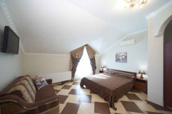 Комплекс располагает 19 просторными номерами категории "Стандарт", "Комфорт", "Семейный" и "Люкс".