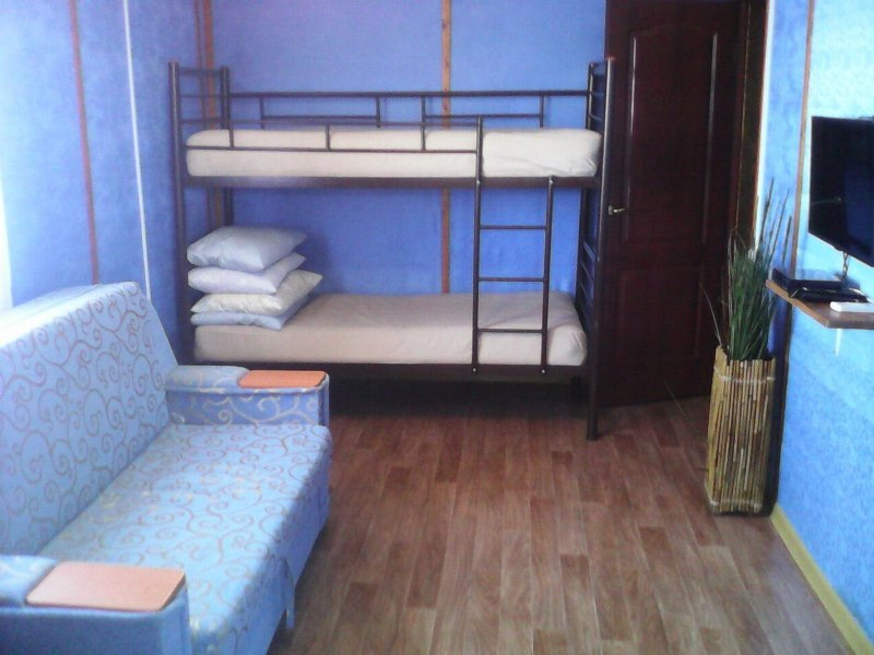 | Мебель: | односпальные или двуспальная кровати, диван-кровать, шкаф, стулья, прикроватные тумбочки, стол, вешалка, зеркало, обеденная зона, двухярусная кровать |