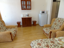 Наш гостевой дом предлагает гостям размещение в 1-,2х-,3х-комнатных комфортных номерах категории "Стандарт" и "Люкс". Все номера просторные, светлые, уютные, оснащены современной мебелью и техникой (телевизор со спутниковой антенной, кондиционер, холодильник, электрочайник). Во многих номерах есть стиральные машины, а также для самостоятельного приготовления пищи оборудована кухня (с необходимой бытовой техникой, кухонной посудой и столовыми приборами).