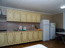 Имеется большая кухня-столовая для самостоятельного приготовления еды, набор посуды и кухонных принадлежностей.