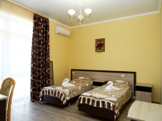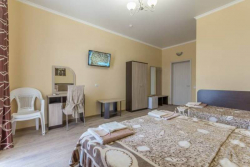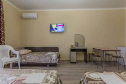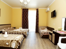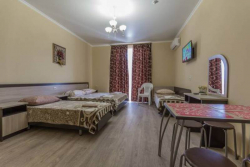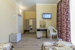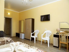 Стандартные номера: ЖК ТВ, сплит-система, холодильник, туалетный столик, прикроватные тумбочки, зеркало, гардеробная, сейф, сан.узел в номере. Возле каждого номера на общем балконе имеются индивидуальные столик и стулья. Горячая и холодная вода постоянно!!!