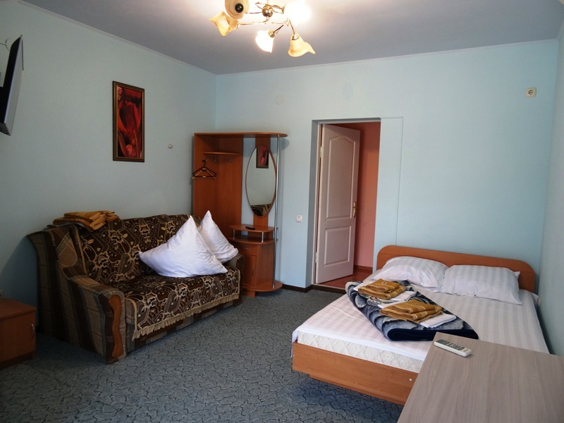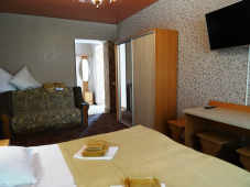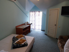 | Мебель: | односпальные или двуспальная кровати, диван-кровать, стол, стулья, шкаф, прикроватные тумбочки, вешалка, зеркало, обеденная зона, уличная мебель |