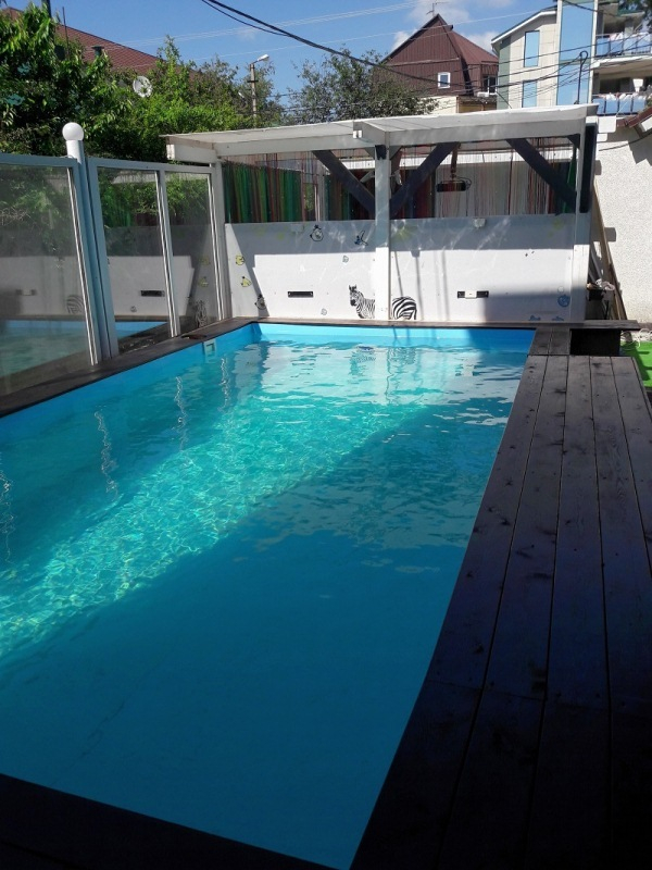 | К Вашим услугам (дополнительно) | - трансфер (платно) - прачечная (платно) - бассейн (бесплатно) - детская площадка - гладильная + утюг - СВЧ (на кухне) - зоны отдыха на территории - бесплатный вызов врача - услуга будильник (бесплатно) - детская кроватка (200 руб./сутки) - детская коляска (70 руб./сутки) |