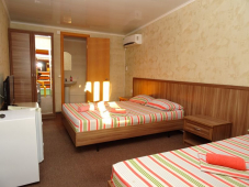 | Мебель: | односпальные или двуспальная кровати, диван-кровать (в 4х-местном), шкаф, стулья, прикроватные тумбочки, журнальный столик, стол, вешалка, зеркало |
