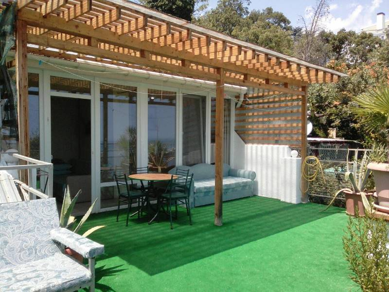 | Мебель: | двуспальные кровати 2 шт, диван-кровать 2 шт, шкаф, стулья, прикроватные тумбочки, стол, кухонный гарнитур, обеденная зона, терраса с видом на море |