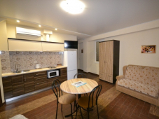 | Удобства: | кондиционер, телевизор, цифровое ТВ, сейф, холодильник, фен, эл. чайник, эл. плита, СВЧ, посуда, балкон, интернет |