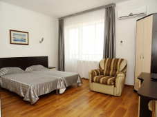 | К Вашим услугам (дополнительно) | - прачечная (платно) - Wi-Fi интернет - трансфер (встреча в Анапе - бесплатно) - бассейн - детская площадка - зеленый двор - места для отдыха (во дворе) - гладильная + утюг - спутниковое ТВ |