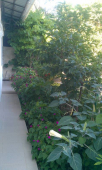 В квартире: бойлер, спутниковое ТВ, холодильник, кондиционер, стиральная машина, утюг, посуда и мебель. Вода горячая постоянно. Во дворе все выложено кафелем. Есть мангал. Два выхода. Во дворе столик со стульями. Один из выходов – балкончик, где можно полюбоваться видом на море, сидя за столиком. В каждой комнате один двуспальный диван и высокий шкаф. Двор декорирован шикарным цветочным палисадником.
