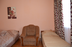 | Мебель: | односпальные или двуспальная кровати, диван-кровать, кресло-кровать, шкаф, стулья, прикроватные тумбочки, стол, вешалка, зеркало |