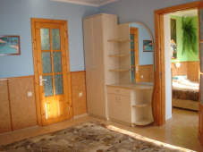 | Мебель: | двуспальная кровать, двуспальный диван-кровать, шкаф, стулья, прикроватная тумбочка, стол, вешалка, зеркало, кухонный гарнитур |