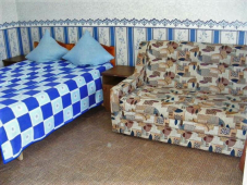 | Мебель: | 2 односпальные кровати, двуспальная кровать, стулья, пуфики, прикроватные тумбочки, стол, туалетный столик, комод, вешалка, зеркало, кухонный гарнитур, обеденная зона |