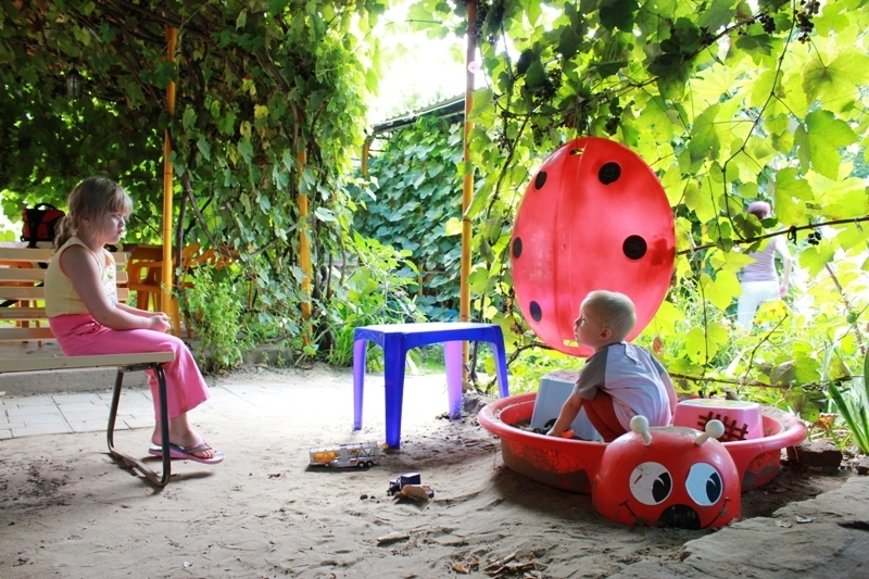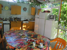 | К Вашим услугам (дополнительно) | - трансфер - (платно - 300 руб. июль, август) - Wi-Fi интернет (бесплатно) - мангал, шампура (бесплатно) - зеленый двор - беседки (виноградные арки) - песочница - гладильная доска + утюг в кухне-беседке - общий телевизор + DVD в кухне беседке - стиральная машина (бесплатно) - детская анимация 1 раз в неделю (бесплатно) |