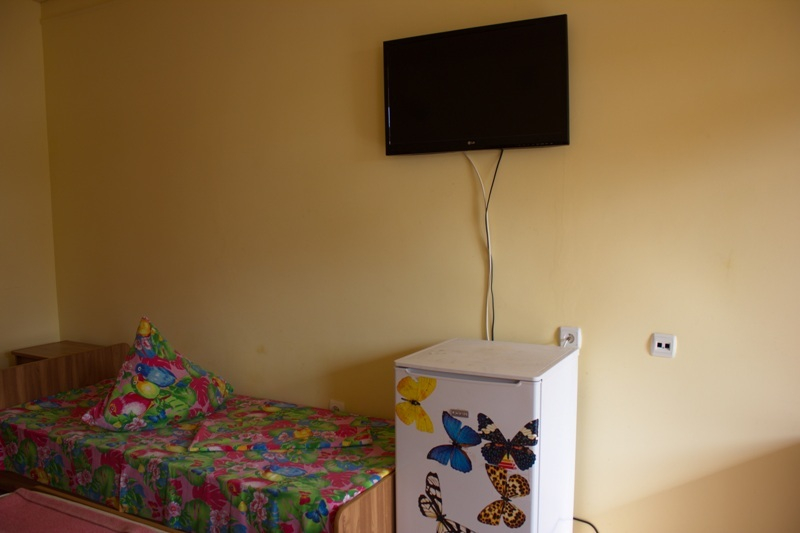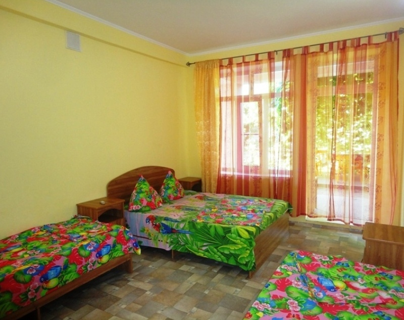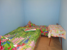 | Мебель: | 2 односпальные и 1 двуспальная кровати, шкаф, прикроватные тумбочки, зеркало, около каждого номера личный столик |