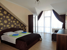 | Удобства: | сплит-система, телевизор, спутниковое ТВ, сейф, холодильник, телефон, фен, эл. чайник, СВЧ, посуда, терраса с мебелью |