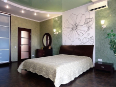 | Мебель: | 2 односпальные или двуспальная кровати, диван-кровать, шкаф, прикроватные тумбочки, журнальный столик, комод, вешалка, зеркало, москитная сетка |