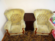 | Мебель: | двуспальная кровать, шкаф, 2 кресла-кровати, пуфики, прикроватные тумбочки, журнальный столик, туалетный столик, вешалка, зеркало |