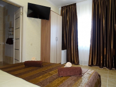 | Удобства: | сплит-система, телевизор, спутниковое ТВ, интернет, холодильник, эл. чайник, посуда, отопление, пол - кафель 1 спальня |