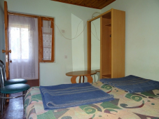 | Мебель: | 2 односпальные или двуспальная кровати, диван-кровать, журнальный столик, шкаф, прикроватные тумбочки, вешалка, зеркало, стол и стулья (на террасе) |