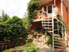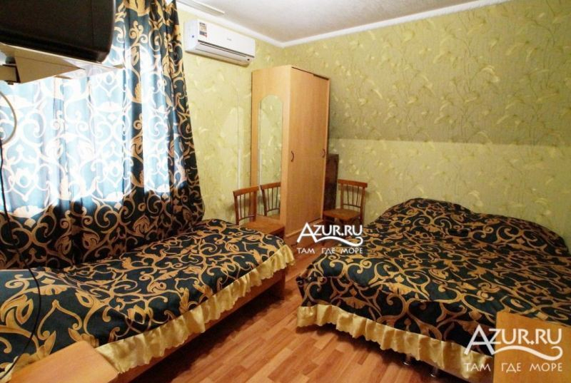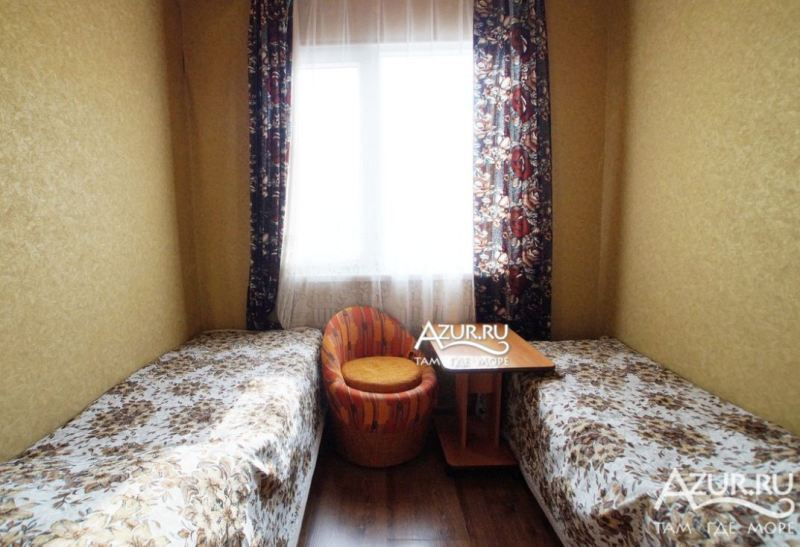 Номера и территория: комфортное проживание в современных двух и трехэтажных кирпичных коттеджах сочетается с дачным колоритом. Многочисленные лестницы с балконами, увитыми вьющимися растениями, с местами для отдыха, зеленый дворик, виноградная аллея, журчание воды у водопада - все это создает спокойствие и безмятежное настроение. Для всех номеров оформлены места для отдыха на балконах и под навесами. Всего 16 номеров разной степени комфортности и ценовой категории от экономов до полулюксов и люксов. Все номера укомплектованы современной мебелью, системой охлаждения и вентиляции, сан. узлами. Имеется спутниковое ТВ, позволяющее смотреть до 65 каналов. На территории гостевого дома оборудованы летние души места для для курения, стирки - сушки, имеется мангал для любителей шашлыка, библиотека. Доп. место- 200 руб.