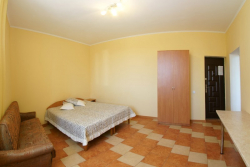 | Удобства: | сплит-система, телевизор, спутниковое ТВ, интернет, холодильник, фен и чайник (по требованию), посуда |