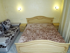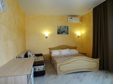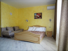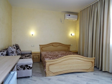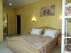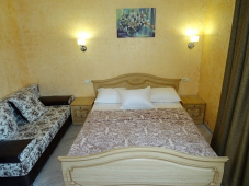 | Мебель: | двуспальная кровать, диван-кровать, шкаф, прикроватные тумбочки, стол, вешалка, зеркало |