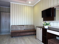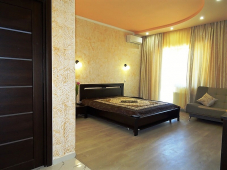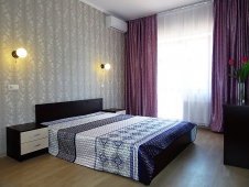 | Мебель: | двуспальная кровать, диван-кровать, пуфики, шкаф, прикроватные тумбочки, журнальный столик, туалетный столик, прихожая, вешалка, зеркало |