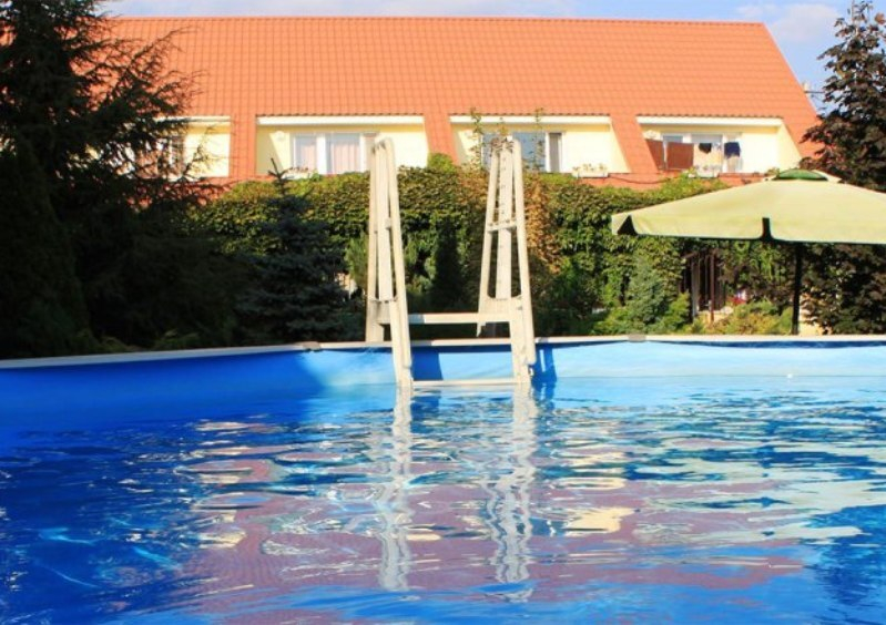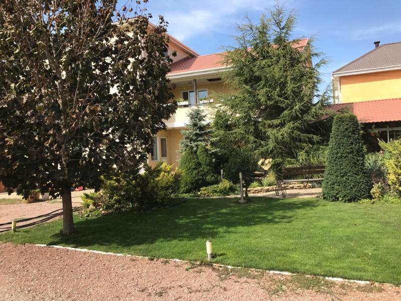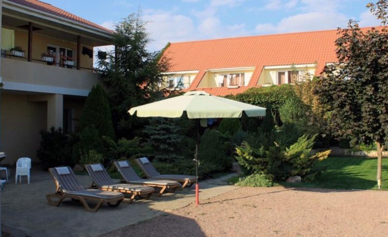 Территория гостиницы огорожена. Во дворе красивый ландшафт, пруд, бассейн, шезлонги (теневой зонт), детская площадка, столовая с кондиционером и TV. Есть место для стоянки автомобилей (бесплатно). Бесплатный wi-fi интернет.