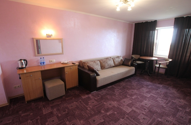 - в люксе: мягкая мебель в гостиной, LCD-телевизор, фен, чайник.