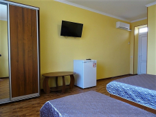 | Мебель: | 2 односпальные и двуспальная кровати, шкаф, прикроватные тумбочки, журнальный столик, вешалка, зеркало |