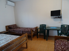 | Удобства: | сплит-система, телевизор, спутниковое ТВ, холодильник, фен, эл. чайник, посуда, интернет |