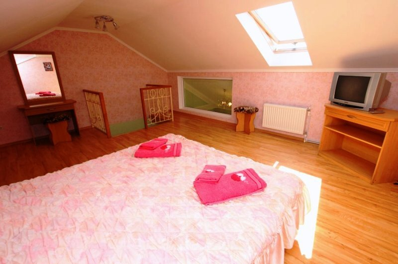 | Мебель: | односпальные или двуспальная кровати, шкаф, стулья, пуфики, стол, вешалка, зеркало |