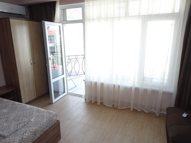 | Удобства: | сплит-система, телевизор, спутниковое ТВ, интернет, холодильник, эл. чайник, СВЧ, посуда, балкон |