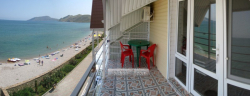 | Расстояния | - пляж песчаный - 1 минута - пляж галечный - 1 минута - набережная - 1 минута - центр - 5 минут (на авто) - центр развлечений - 20 минут (на авто) - аквапарк - 20 минут (на авто) - дельфинарий - 20 минут (на авто) - рынок - 5 минут - магазин продукты - 1 минута - остановка маршрутки - 3 минуты - аптека - 5 минут |