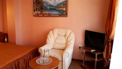 Наши номера просторные, имеют балкон (террасу или лоджию). Включают телевизор, кондиционер, холодильник. Кроме того, мы предоставляем для наших отдыхающих фильтрованную питьевую воду, чайник, необходимую посуду, фен. Ванные комнаты обустроены современной сантехникой. Всегда есть горячая и холодная вода. В номерах, категории "Люкс" имеются ванна и биде.