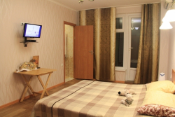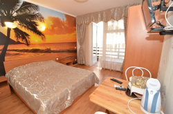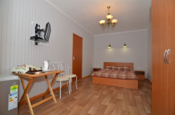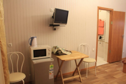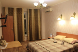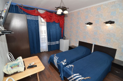 | Удобства: | кондиционер, телевизор, интернет, мини-холодильник, эл. чайник, СВЧ, газовая плита, фен (по требованию), посуда (чайный набор), балкон, скороварка (№2.1. "Африка") |
