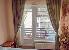 | Удобства: | кондиционер, телевизор, интернет, мини-холодильник, эл. чайник, СВЧ, газовая плита, фен (по требованию), посуда (чайный набор), большой балкон - 14,40 м. |