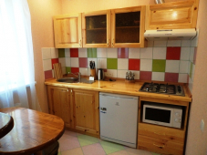 | Мебель: | двуспальная кровать, диван-кровать, стулья, журнальный столик, стол, комод, прихожая, вешалка, зеркало, кухонный гарнитур, обеденная зона |