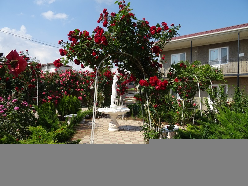 | К Вашим услугам (дополнительно) | - трансфер (платно) - стиральная машина (платно) - зелёный двор с арками для роз - беседка - фонтан с лавочками - мангал - детская площадка с песочницей - качели - Wi-Fi интернет - гладильная + утюг - спутниковое ТВ с LD телевизорами - детская кровать с комплектом постельного белья (по предварительному заказу) - стульчик для кормления (по предварительному заказу) - горячая и холодная вода круглосуточно - батут |