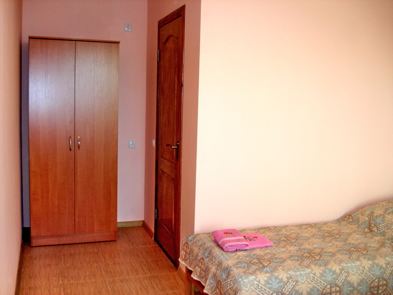 | Мебель: | односпальные или двуспальная кровати, шкаф, стулья, прикроватные тумбочки, зеркало, кресло и журнальный столик (в 2х-местном номере) |