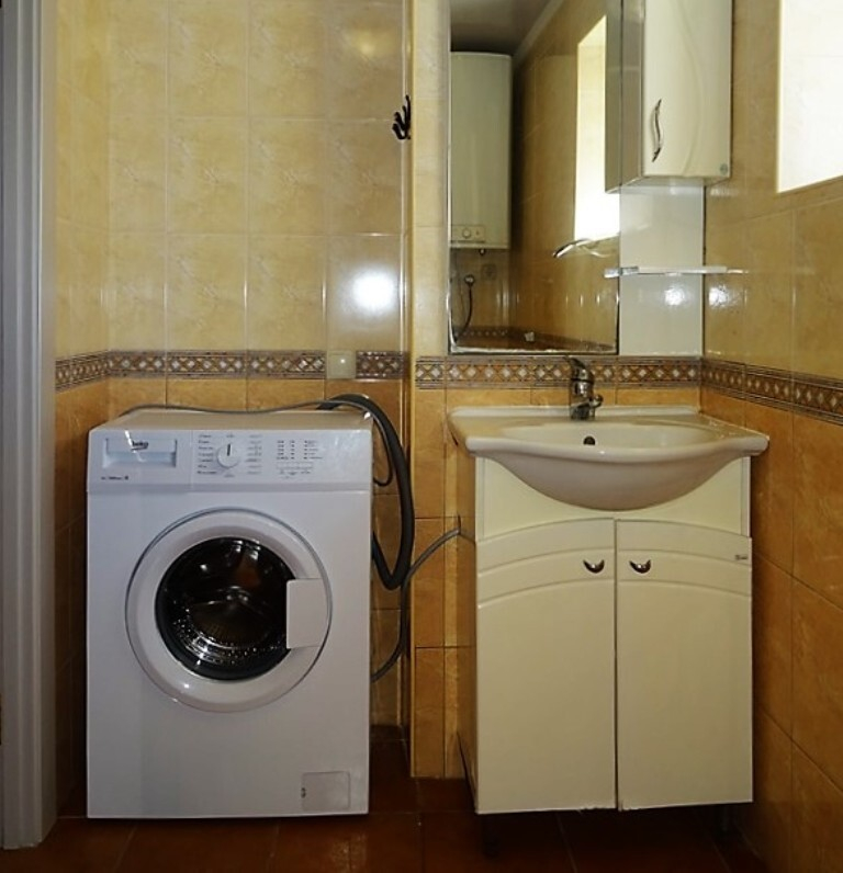 Сан.узел. совмещён, бойлер, умывальник с тумбой и зеркалом, стиральная машинка автомат.