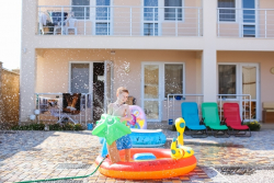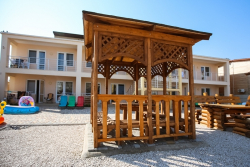 | К Вашим услугам (дополнительно) | - трансфер (платно) - стиральная машина (платно) - wi-fi интернет - экскурсии (платно) - бассейн - мангал - детская площадка - зеленый двор - беседка - гладильная + утюг - спутниковое ТВ |